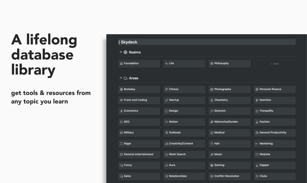 This template assumes that you have some knowledge of relational & linked databases since all databases are already linked together. Also, since this template is massive and encompasses your entire life, we recommend that you upgrade to a paid Notion account so you don't run into any block limits